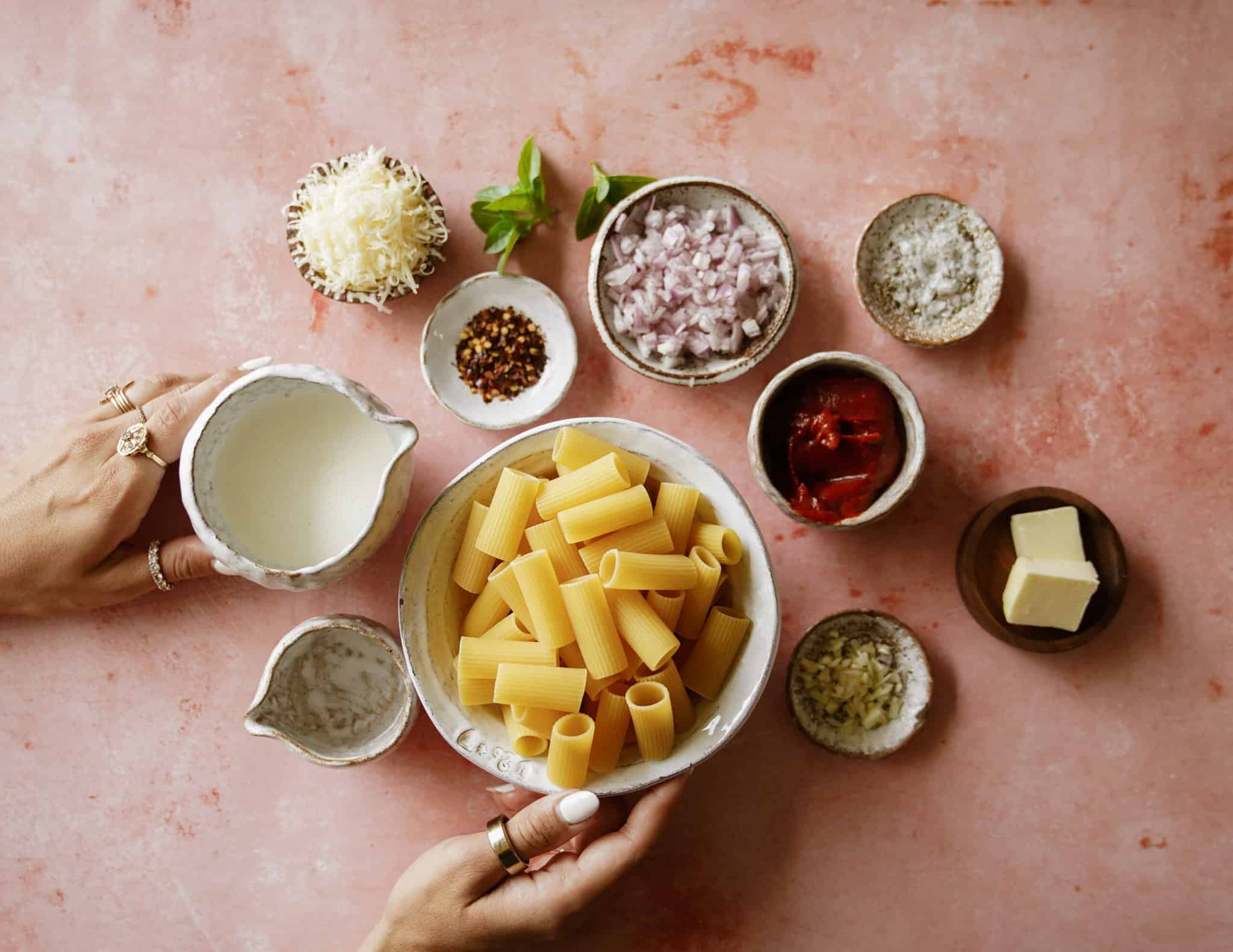 - Vodka: The vodka is what sets this apart from a regular rose sauce, but you can sub for gin, or boxed wine instead. If you want no alcohol at all, you can use lemon water, chicken broth, or stock.